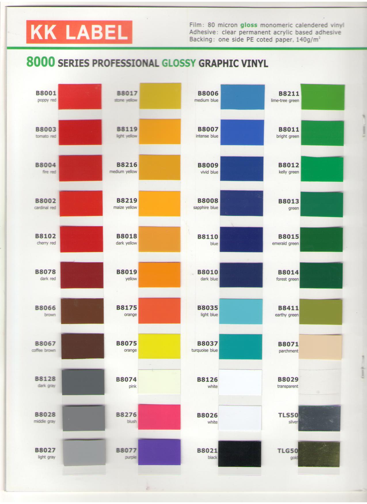 1.Facefilm:80 micron MONOMERIC calendered gloss or matt PVC film